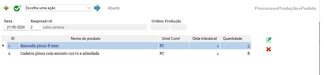 Para alterar ou excluir um item da lista, selecione a linha e abra novamente o formulário de edição de lista ou clique no botão de exclusão conforme a ação desejada.