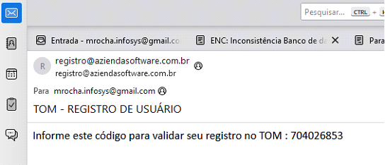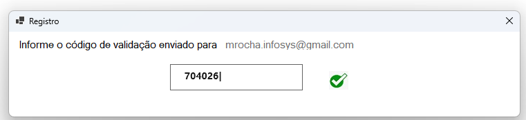 Tratando-se de registro novo, um código de ativação é enviado para o email informado.